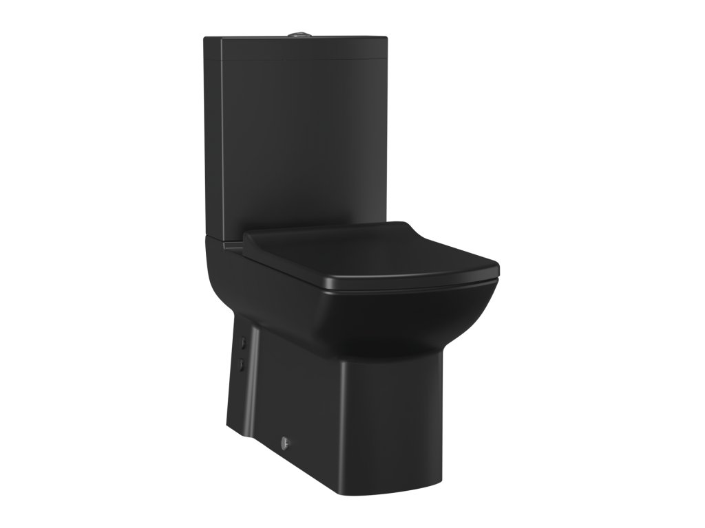 Čierne kombi WC s bidetom - LARA LR3641-BL s UNI odpadom v sebe spája toaletu a bidet v jednej keramike. Vďaka hĺbke len 63 cm je vhodný aj do tých najmenších kúpeľní.