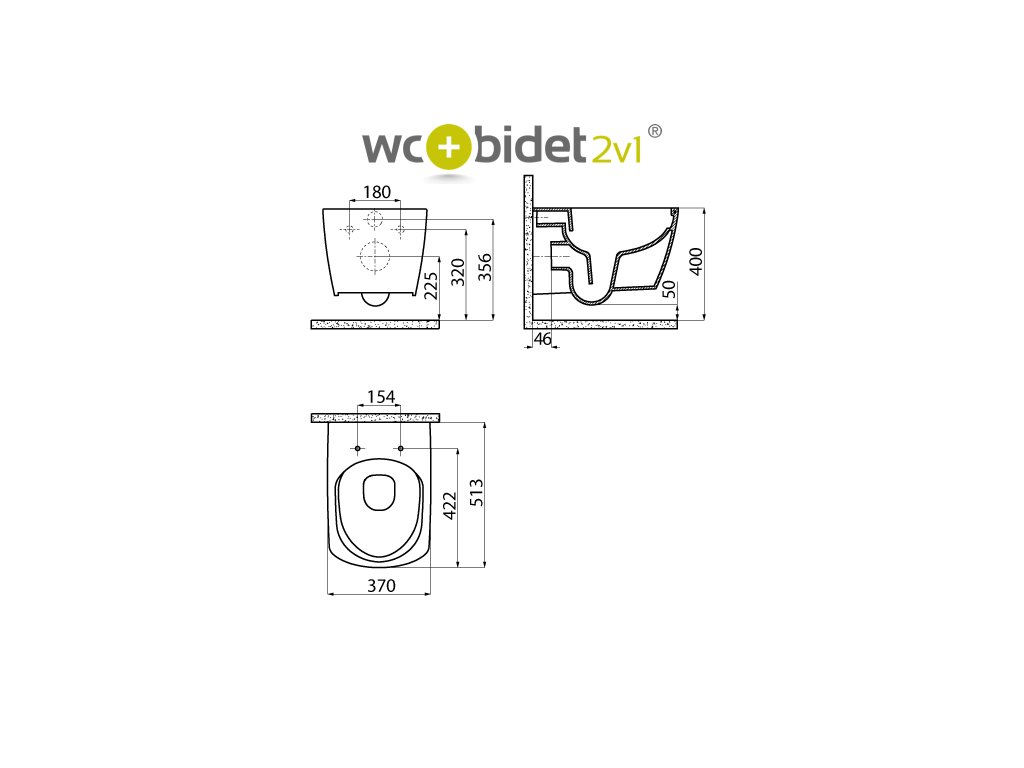 Model vyššej triedy závesných WC s BIDETOM 2v1 s mierne hranatým vzhľadom bude ozdobou každej modernej kúpeľne. Ďalšou výhodou tohto modelu je skrytá montáž a možnosť úsporného splachovania 3/6 litrov vody. Jednoducho odnímateľné WC sedátko(treba objednať zvlášť) je ďalším benefitom, ktorý istotne uvíta každá gazdinka.