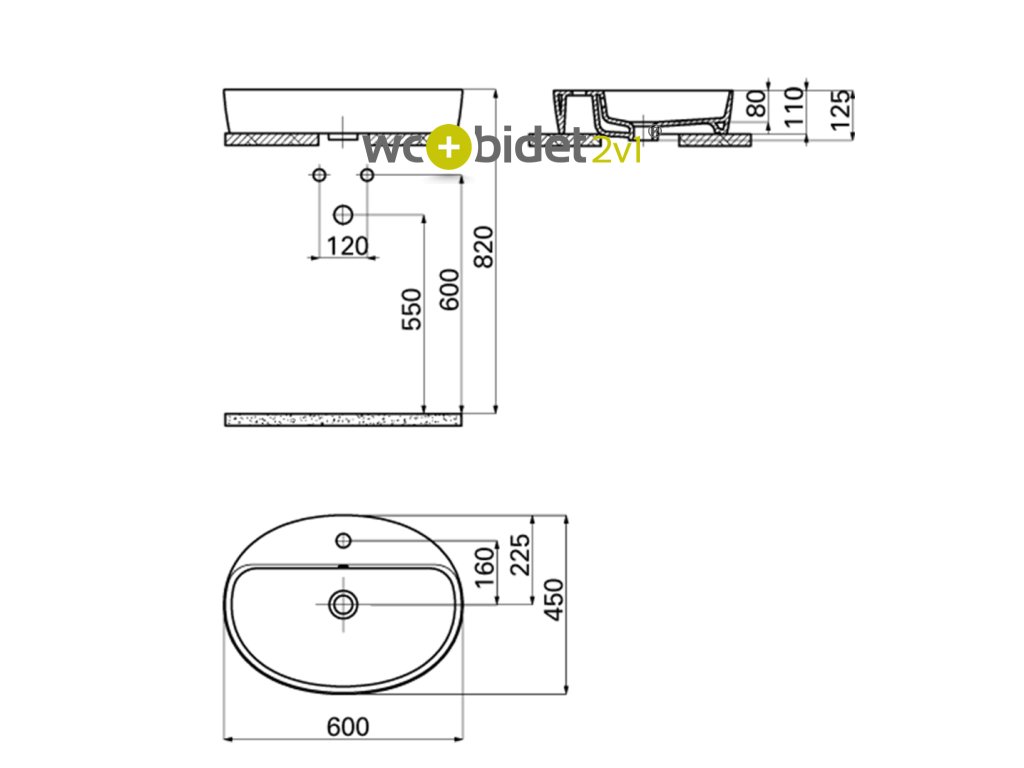 CREAVT LOOP OVAL keramické umývadlo na dosku 60x40 cm s otvorom pre batériu, biela