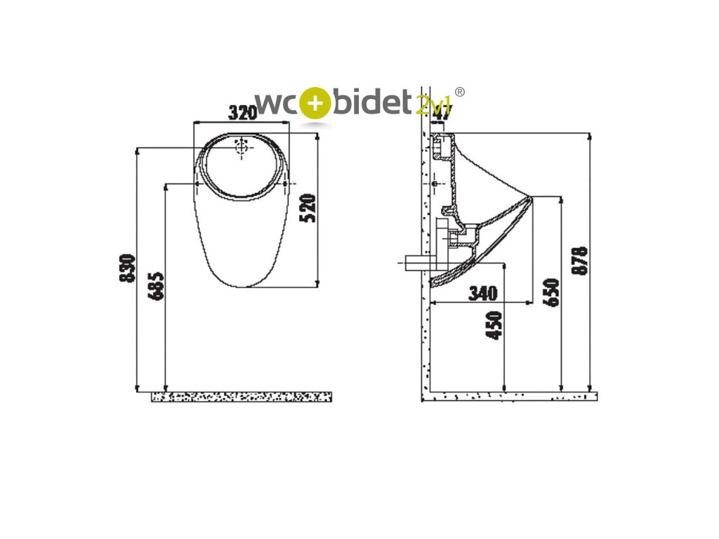 Jedná sa o klasický závesný urinál s vrchným prívodom vody vhodným pre ručné splachovanie.