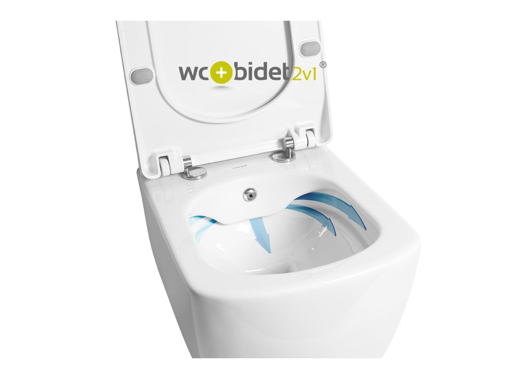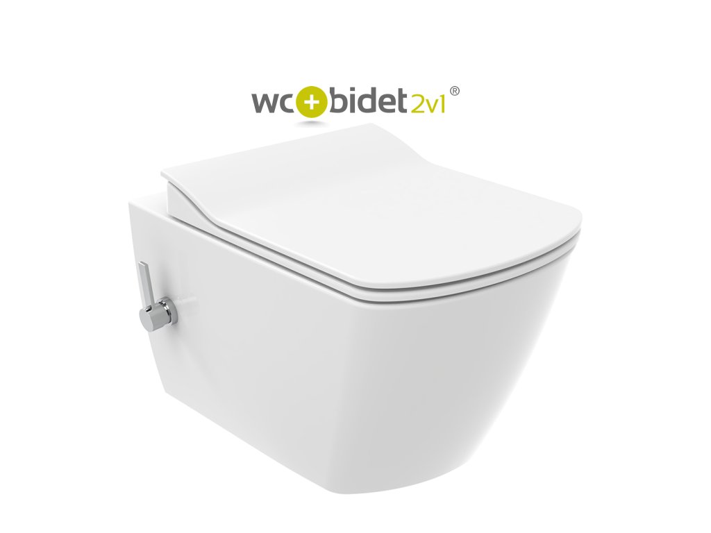 Model vyššej triedy závesných WC s BIDETOM 2v1 s mierne hranatým vzhľadom bude ozdobou každej modernej kúpeľne. Ďalšou výhodou tohto modelu je skrytá montáž a možnosť úsporného splachovania 3/6 litrov vody. Jednoducho odnímateľné WC sedátko(treba objednať zvlášť) je ďalším benefitom, ktorý istotne uvíta každá gazdinka.